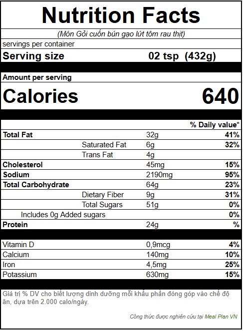 - Số gỏi cuốn: 432 g/2 cuốn